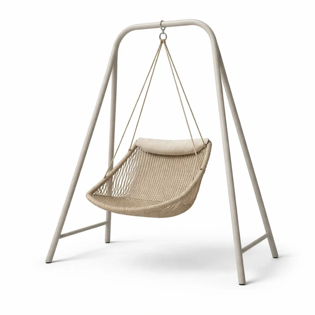 Materiali: Seduta in corda intessuta, struttura in metallo